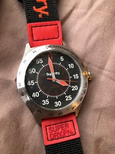 WHITE NYLON STRAP 22mm WIDE WITH RED SUPERDRY EMBOSSED, STAINLESS STEEL BUCKLE FASTENER.