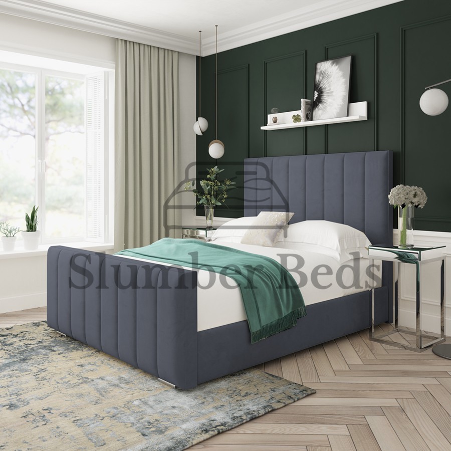 The bed can be upholstered in super soft Plush Velvet and has a simple yet graceful design. this bed has a high headboard which provides increased comfort and support. Headboard Height You can also add Gas Lift Ottoman for extra Storage!