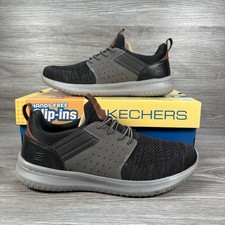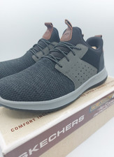 Brand new without box Classic fit Black/Grey Slip on Lightweight The Skechers Men's Delson Camben Trainers in size UK 10 are brand new and offer a classic fit for casual occasions. These slip-on trainers feature a combination of black and grey colours, making them versatile for everyday wear. Designed for comfort and performance, they are cushioned with memory foam, providing support for activities such as gym training, walking, and running. With a standard shoe width and a focus on comfort, these sneakers from Skechers are a practical and stylish choice for men looking for both style and functionality in their footwear.