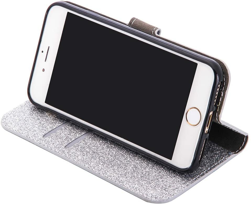GLITTER WALLET FOR APPLE IPHONE X / IPHONE XS. The case has 2 card slots and a cash slot.