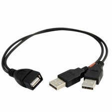 Connectors: 1 USB type B Male to 2 USB type A Male. Simply plug this cable's USB B end into the device, and then plug the two USB A ends into open USB ports on one desktop PC or Mac. This cable then pulls power from both USB ports, and thus increases the output to the external drive.