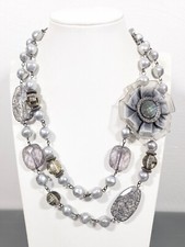 Luxury Chunky Women Elegant Pearl Crystal Bridal Silver Chain Necklace Set CD01