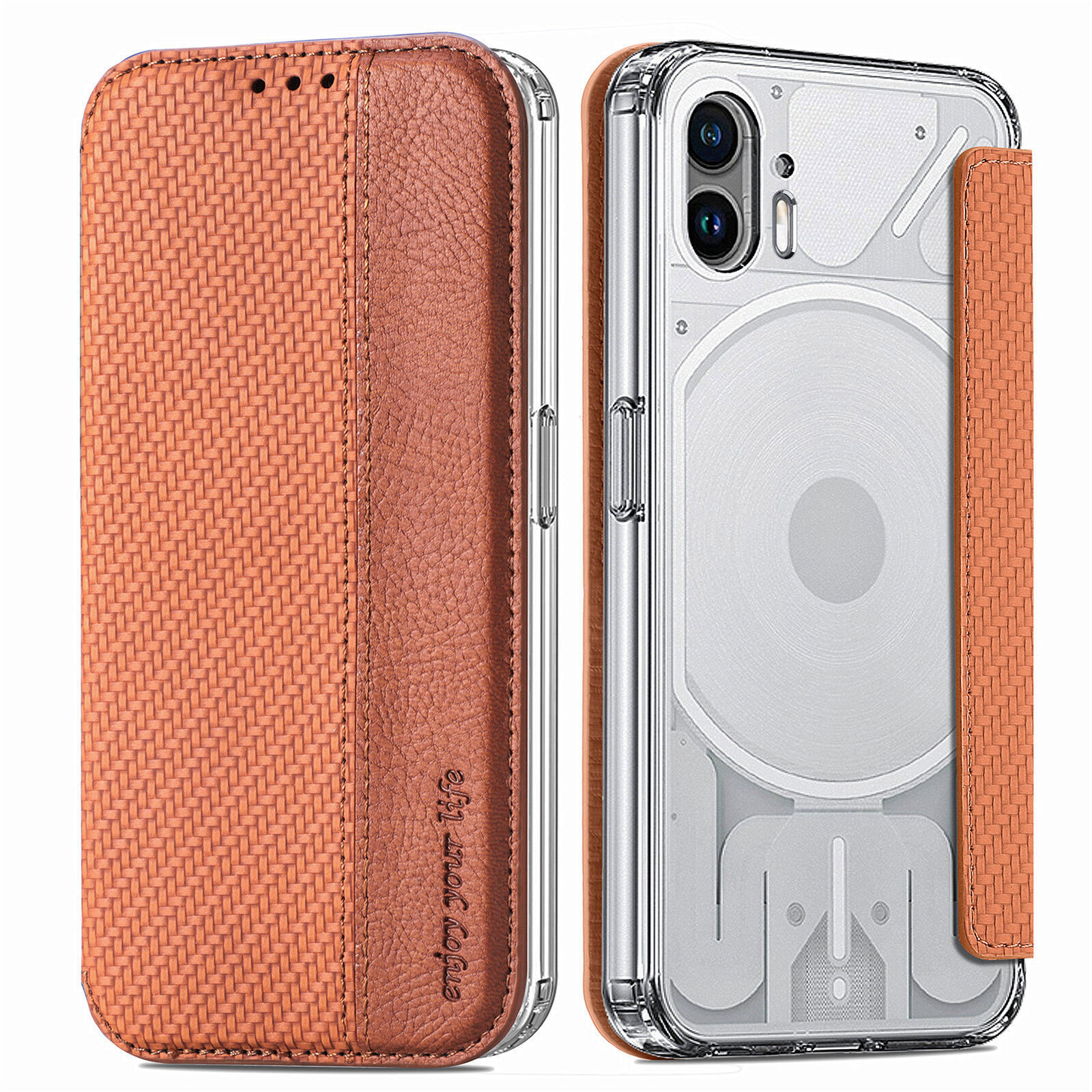 For Nothing Phone (2), Luxury Flip Carbon Fiber Leather Wallet Card Case Cover
