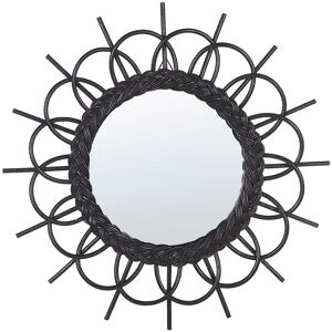 The piece is made out of natural rattan, which makes it durable and easy to clean. Material Type: Rattan. Main Material: Rattan. Product Type: Wall Mirror. Width: 60 cm. Height: 60 cm. Depth: 3 cm. Key Features: With Hooks on the Back for Hanging on the Wall, Enlarges Interior Visually, Eye-Catching Accent Piece, Unique Handmade Piece, Easy Care and Durable Materials.