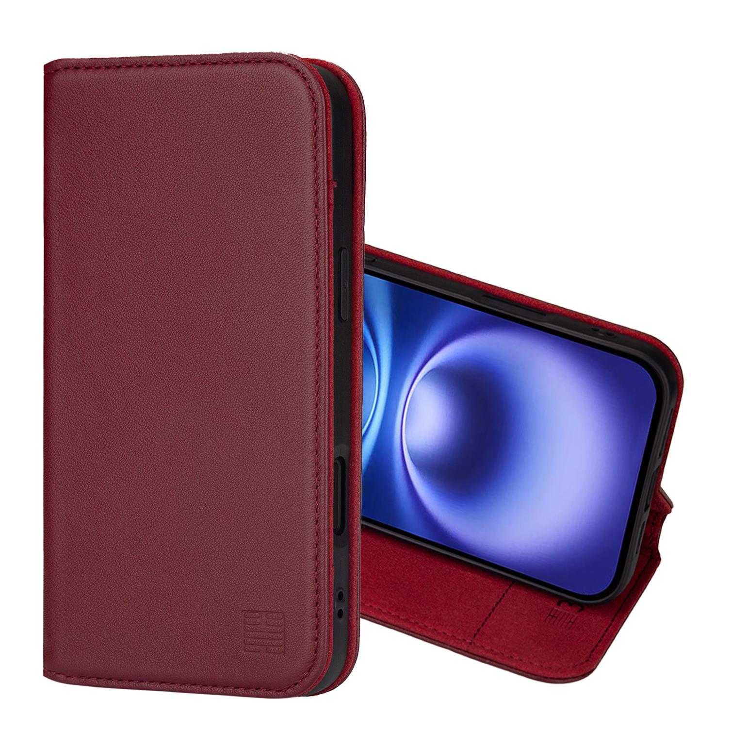 Real Leather Book Wallet Flip Case Cover For iPhone 16 (6.1").