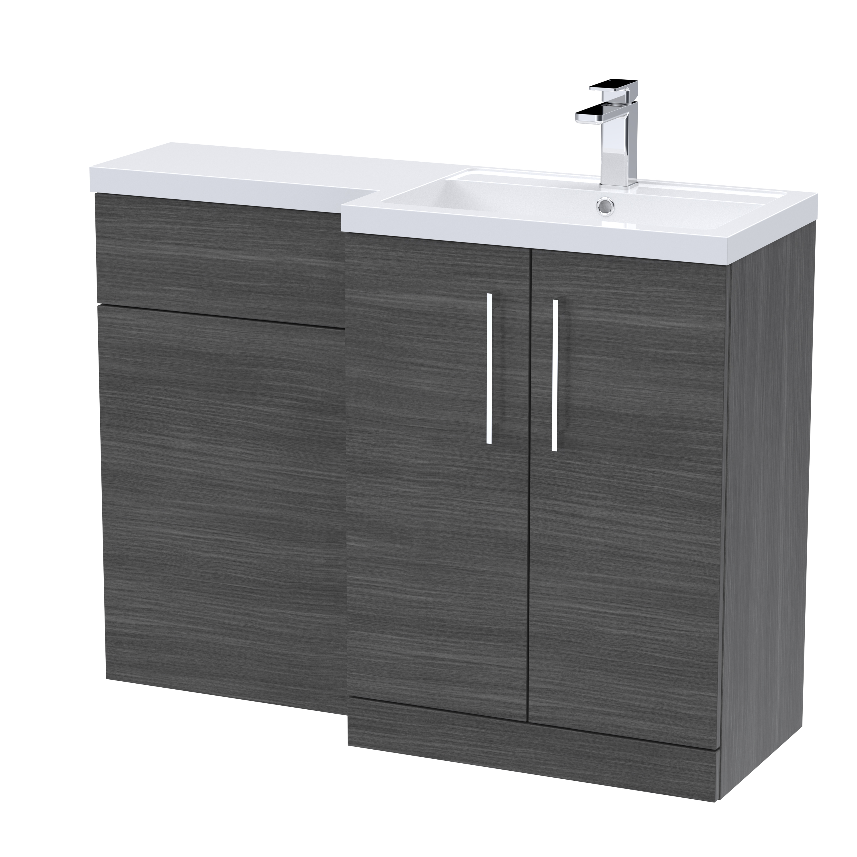 Balterley Level Furniture Combination Vanity Basin & WC Unit Right Hand – 1100mm x 390mm. This floor-standing unit includes a vanity basin with worktop and a matching WC unit, providing ample storage while maintaining a modern, elegant aesthetic.