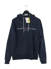 Nice looking men's long sleeve embroidered spellout logo pullover fleece hoodie from Tommy Hilfiger New York, main colour is Royal Blue, it's in great condition, size Small on the tag but could fit a size Medium also, as it measures 21" across the chest, collar to hem is 25.5" and shoulder to cuff is 24". Thanks for looking