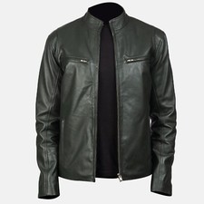 MEN'S GENUINE LAMBSKIN CAFE RACER VARSITY LEATHER JACKET BLACK RED BOMBER JACKET