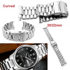 Metal Watch Band Curved End Link Solid Stainless Steel Replacement Strap 20-22mm