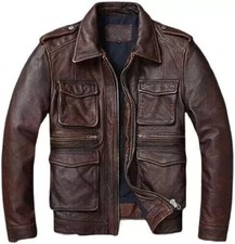 Men's Distressed Brown Cafe Racer Moto Real Leather Biker Jacket Motorcycle
