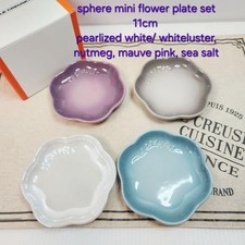 The 5 Le Creuset Petal Plates are a stylish addition to any dining table. Made from durable stoneware, these original flower-themed plates are perfect for all occasions. Check the photos for a view of each item. The dishwasher-safe design makes them easy to clean, while the pottery production technique ensures quality and longevity. Upgrade your tableware collection with these elegant and timeless plates from Le Creuset. Item is totally unused and unmarked.