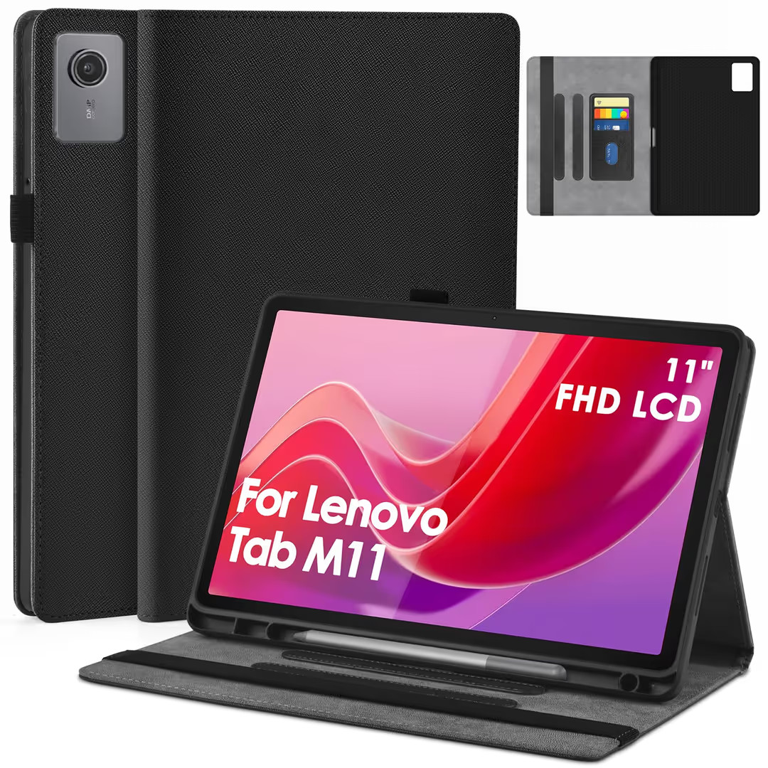 The Lenovo Tab M11 11-inch Shockproof Folio Case by Katumo is a sleek and practical accessory for your tablet. Made from durable PU leather, the folding folio case provides shockproof protection for your device. It also features a convenient pen holder for easy storage. Designed specifically for the Lenovo Tab M11 11-inch, this black case is both stylish and functional, ensuring your tablet stays safe and secure while on the go. Made in China, this unit quantity 1 case is an essential addition to your tech accessories collection.