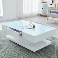 Living Room Table High Gloss Coffee Table Tempered Glass Top with Storage Space