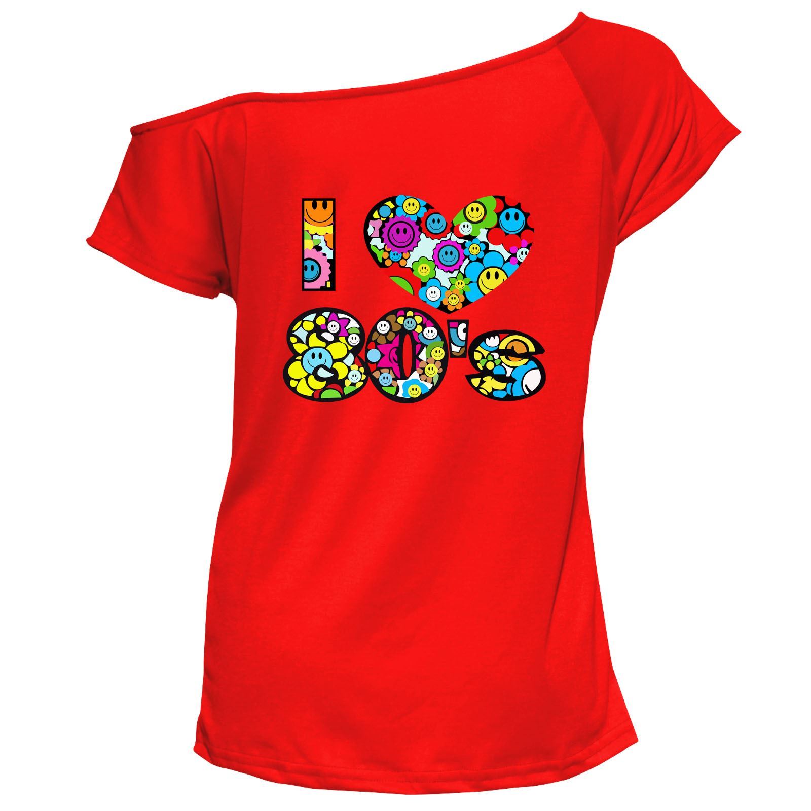 I Love The 80s Top Rock Star Party Fancy Dress Tee Ladies T-Shirt 6021742®. Ladies I Love The 80s Top Off Shoulder Retro Pop Star T-Shirt. I Love The 80s Printed T Shirt. FANCY DRESS. Best For Music Dance Hen Party.