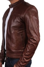Mens Vintage Distressed Black Jacket Motorcycle Casual Biker Leather Jacket Coat