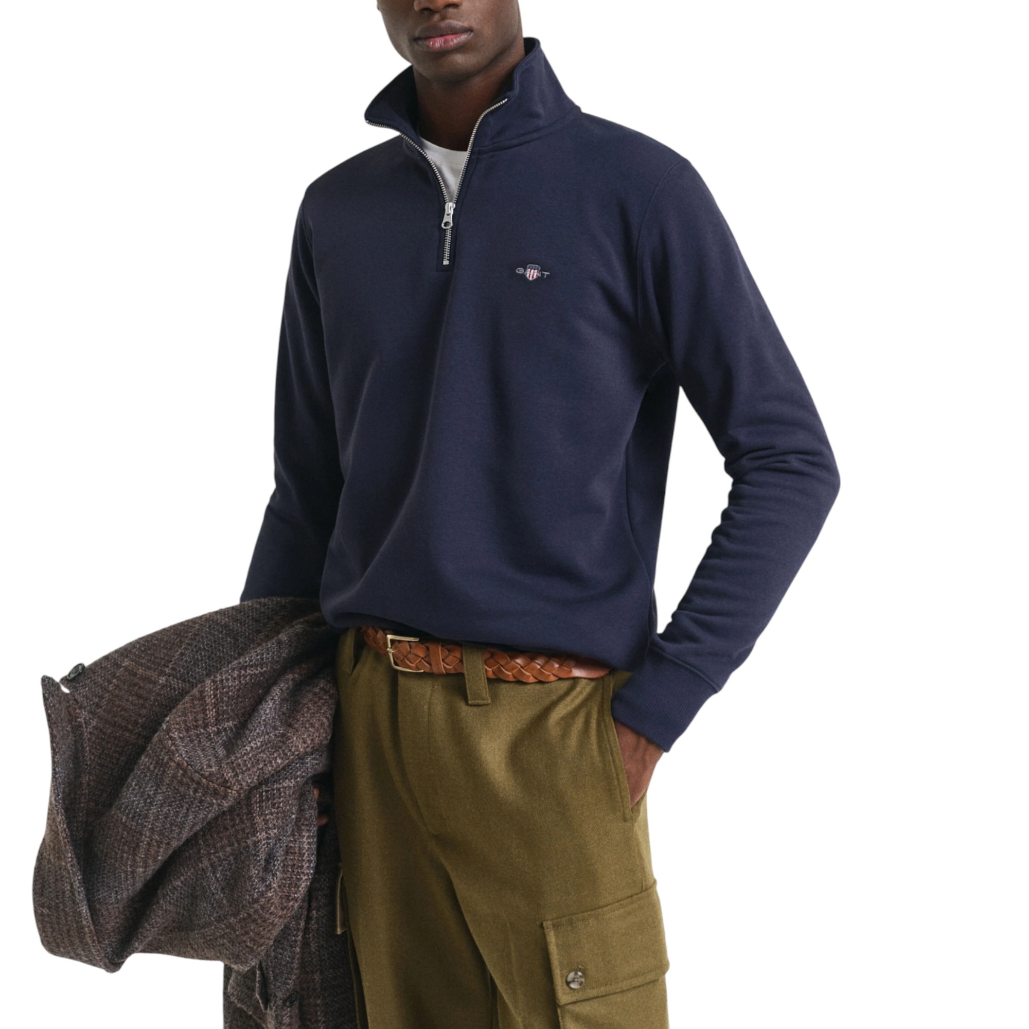 GANT Mens Sweatshirt Embroidered Shield Half Zip Pullover Winter Jumper Black
