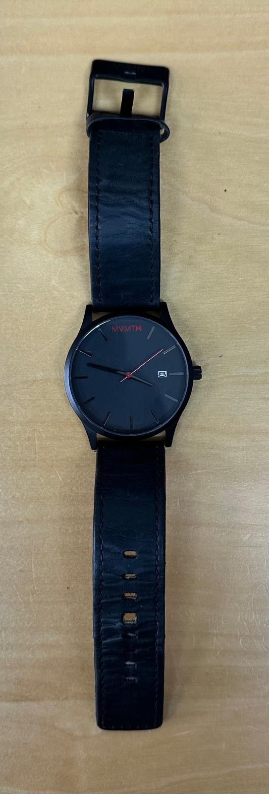 MVMT Men's Classic Black Leather Stainless Steel Back Wristwatch - Untested