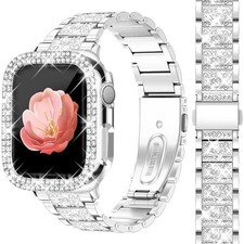 Case sizes:38mm / 40mm / 42mm / 44mm / 45mm. Premiumstainless steel bling strap with crystal shine. Apple Watch Series 1–10 & SE. Adds glamour and sparkle to your Apple Watch. Full-screen protective case for all-round display protection.
