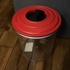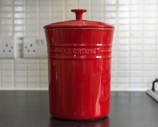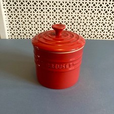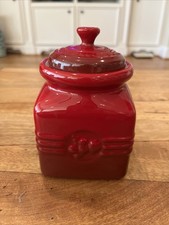 This Le Creuset Cerise Red Storage Jar is a classic cylinder-shaped stoneware item with a capacity of 0.8 litres. It comes with a lid and features the iconic Le Creuset branding. The timeless design and vibrant red colour make it a stylish addition to any kitchen. With a height of 17cm, this storage jar is both practical and visually appealing, perfect for organizing your kitchen essentials. Plus, with free postage included, you can enjoy saving money while adding a touch of elegance to your home. No box No damage or chips looks like new FREE POSTAGE