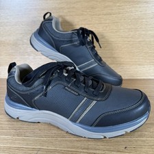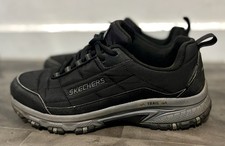 The Men's Skechers Shoes in size 9 offer a comfortable and relaxed fit, perfect for outdoor activities. These tan sneakers are waterproof, making them ideal for all seasons. The lace-up closure, rubber outsole, and memory foam insole provide added comfort and support. Suitable for activewear, casual wear, and workwear, these Skechers shoes are a versatile addition to any man's wardrobe. Made with leather and textile materials, these athletic shoes feature a solid brown color and a low-top shoe shaft style for easy wear and a stylish look.