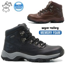 MENS WATERPROOF TRAINERS LEATHER MEMORY FOAM WALKING HIKING ANKLE BOOTS SHOES