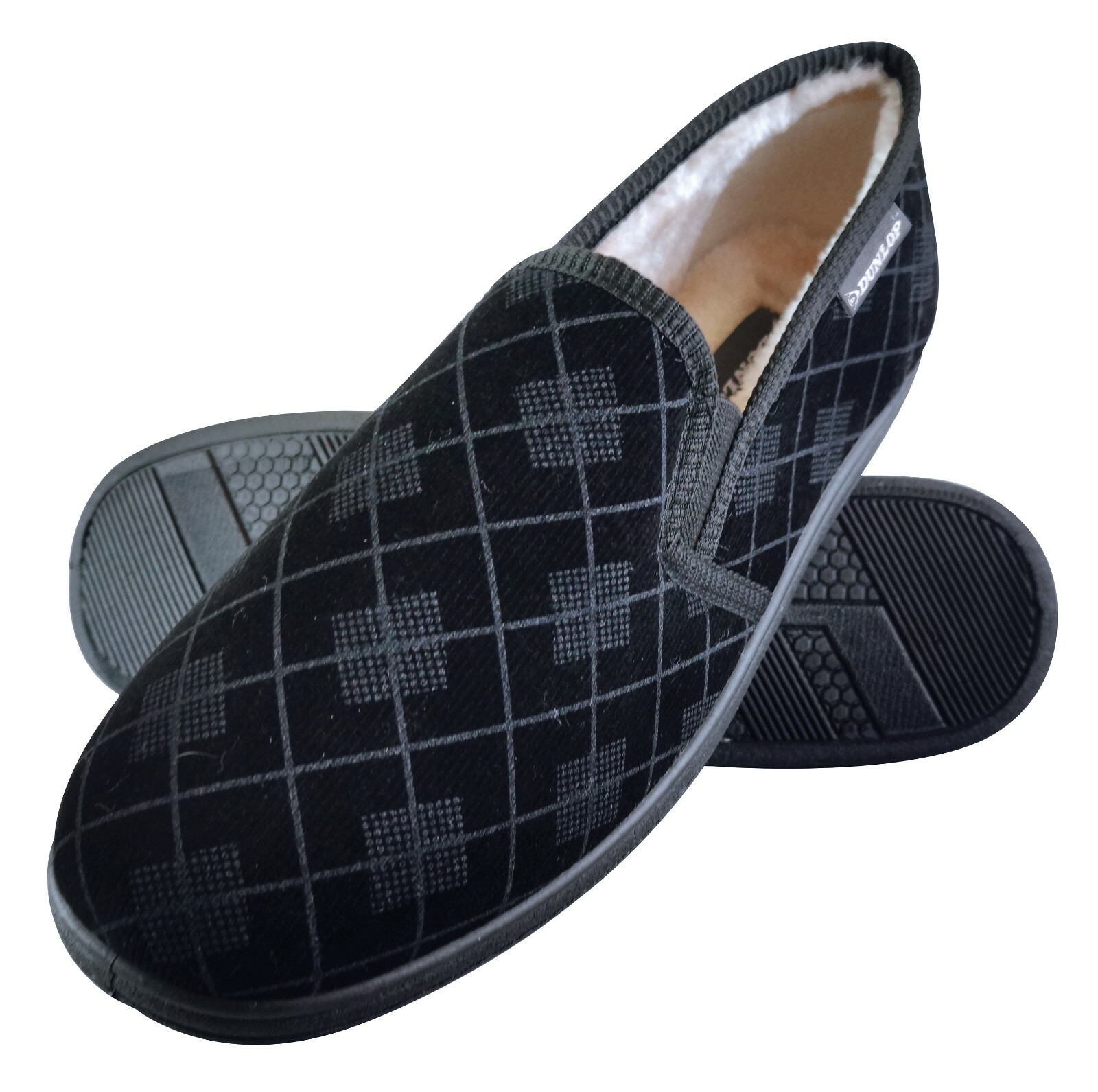 Dunlop - Mens Plush Fur Lined Memory Foam Checked Moccasin Hard Sole Slippers