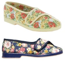 Womens Ladies Easy Slip On Twin Gusset Floral Canvas Pumps with Platform Sole.