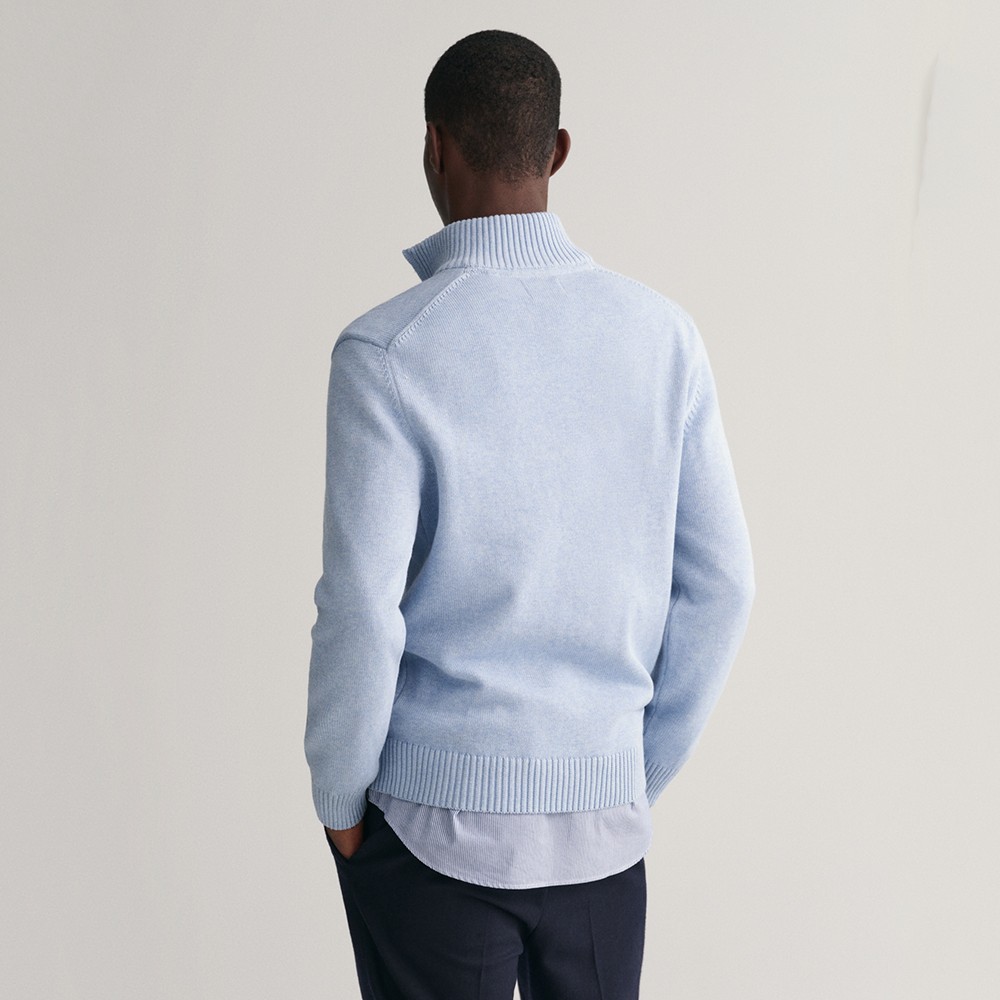 Gant Cotton Half Zip Jumper in Light Blue Melange is designed to bring a new staple piece to your smart-casual wardrobe for the new season and makes a great choice for layering in cooler weather. Constructed with half-zip fastening and featuring embroidered branding to the left side of the chest.
