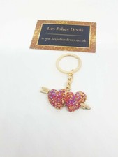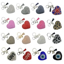 PU Leather Heart Keyring Sparkly Bling Glitter Gift Birthday Present for Her
