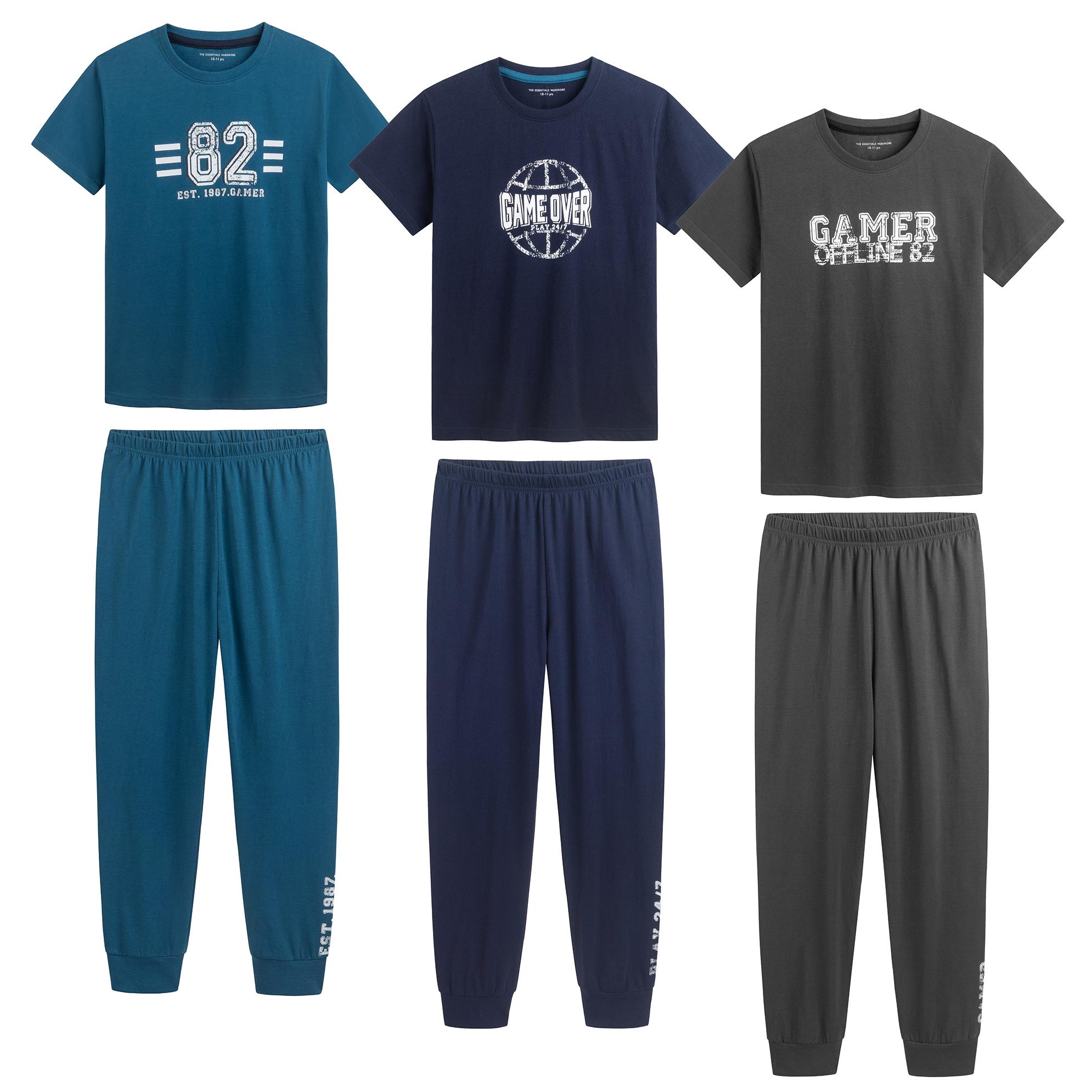 Boys Short Sleeve Pyjamas Set 3 Pack 100% Cotton Matching Top & Bottom Nightwear