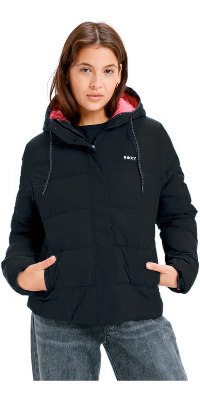 Roxy silicone patch. Fit: Regular line; Hood: Lined and padded hood. Bungee cord at hood. Closure: Front zip closure. We're here to help you find the best products to suit your needs.
