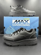 The Men's Skechers Work RF: Max Cushioning Elite SR in Filchner Black is a stylish and comfortable trainer suitable for autumn wear. Made with leather uppers and featuring a rubber outsole, these sneakers offer both durability and support. With a relaxed fit design and cushioning for added comfort, these Skechers trainers are perfect for men who require quality footwear for work or casual use. The sleek black colour adds a versatile touch to any outfit, making them a practical and fashionable choice for everyday wear. **In excellent condition. Only used for two weeks, slightly used. No original box, but if purchased will send it in a box.