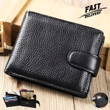 Mens RFID Blocking Genuine Leather Wallet Black Wallet With Snap Button UK