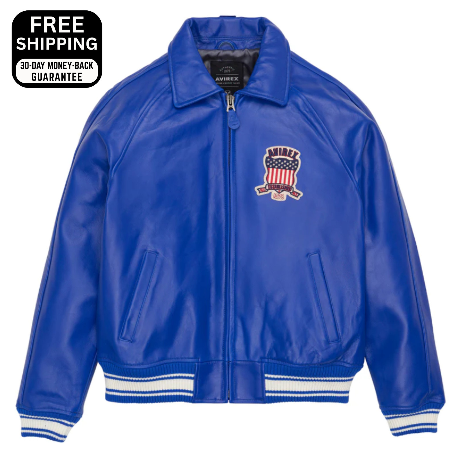 Avirex Men's Blue Real Leather Bomber Jacket Pilot Flight Aviator Authentic