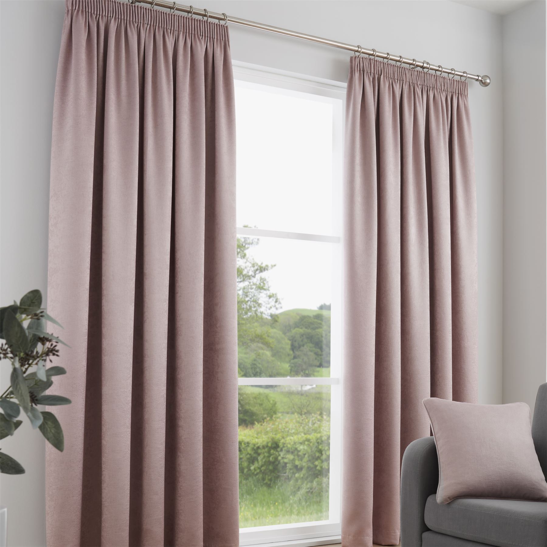 Curtains: - Ready made lined pencil pleat curtains. Size is (WIDTH x DROP) per curtain panel. A simple, classic, semi-plain pair of dim-out pencil pleat curtains that will suit any room in the house.