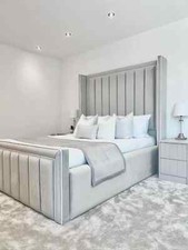 WIHT PIPING EDGE WINGBACK PANEL VELVET UPHOLSTERED BED FRAME ALL SIZES AVAILABLE