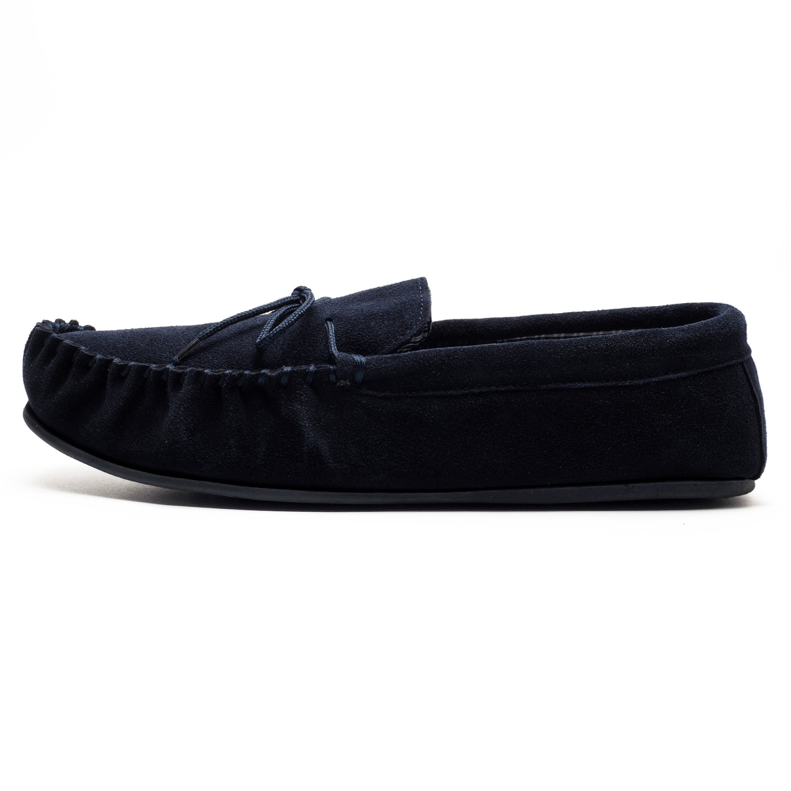 These Bruce leather loafer slippers from Mokkers have been design to give you a comfortable and warm step every single time you slide these slippers on to your feet. - Suede leather upper - Slip-On design - Cushioned footbed - Durable rubber outsole .