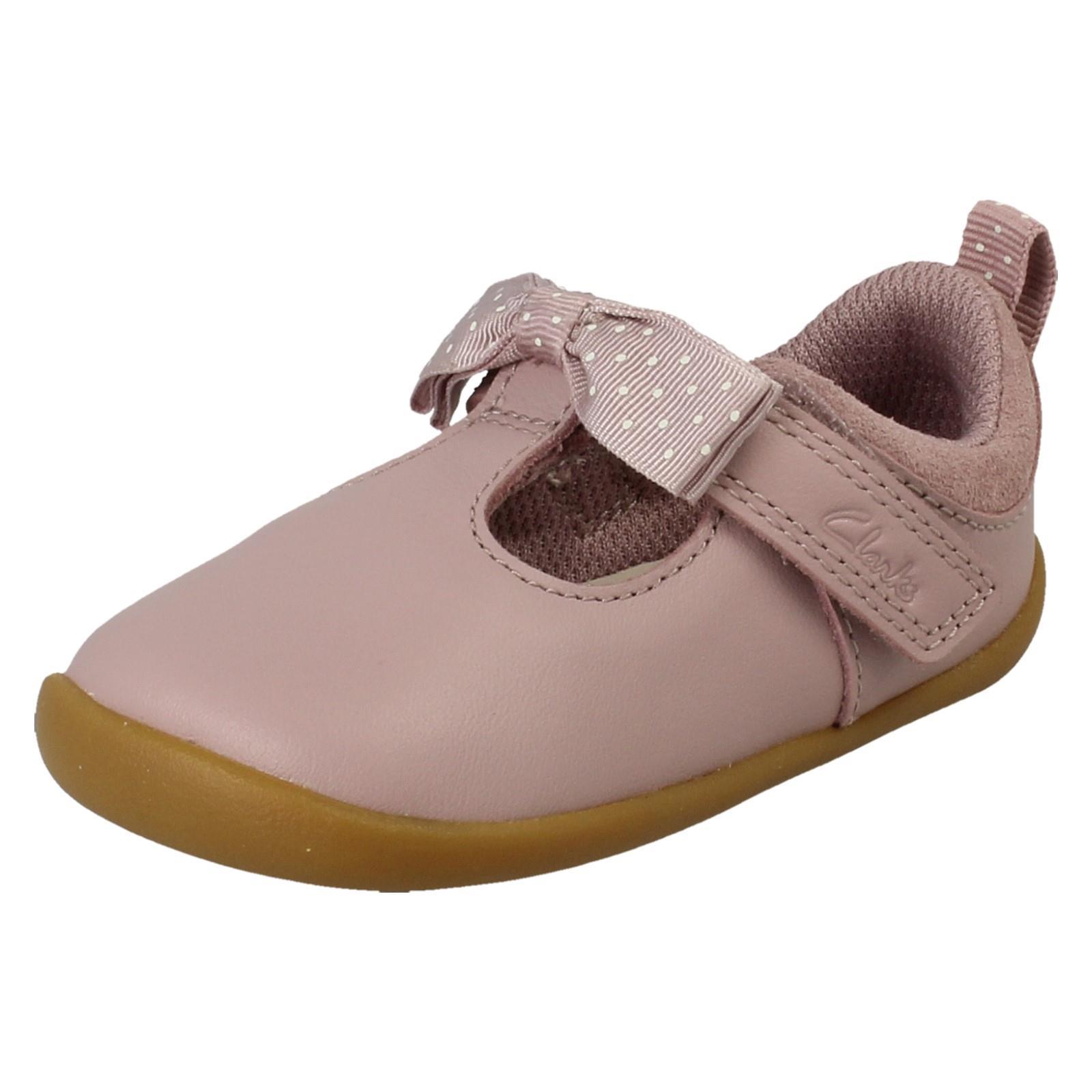 Girls Clarks Polka Dot Detail Soft Leather T-Bar Pre Walking Shoes Roamer Trim