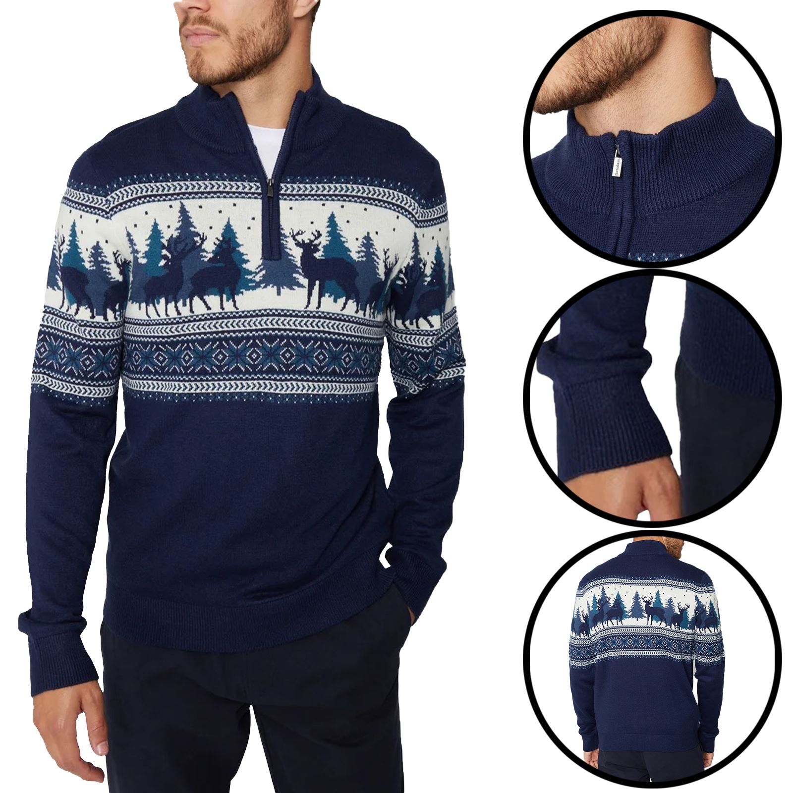 Threadbare Mens Aztec Pattern Jumper Fair Isle Knitted Zip Cardigan Xmas Gift