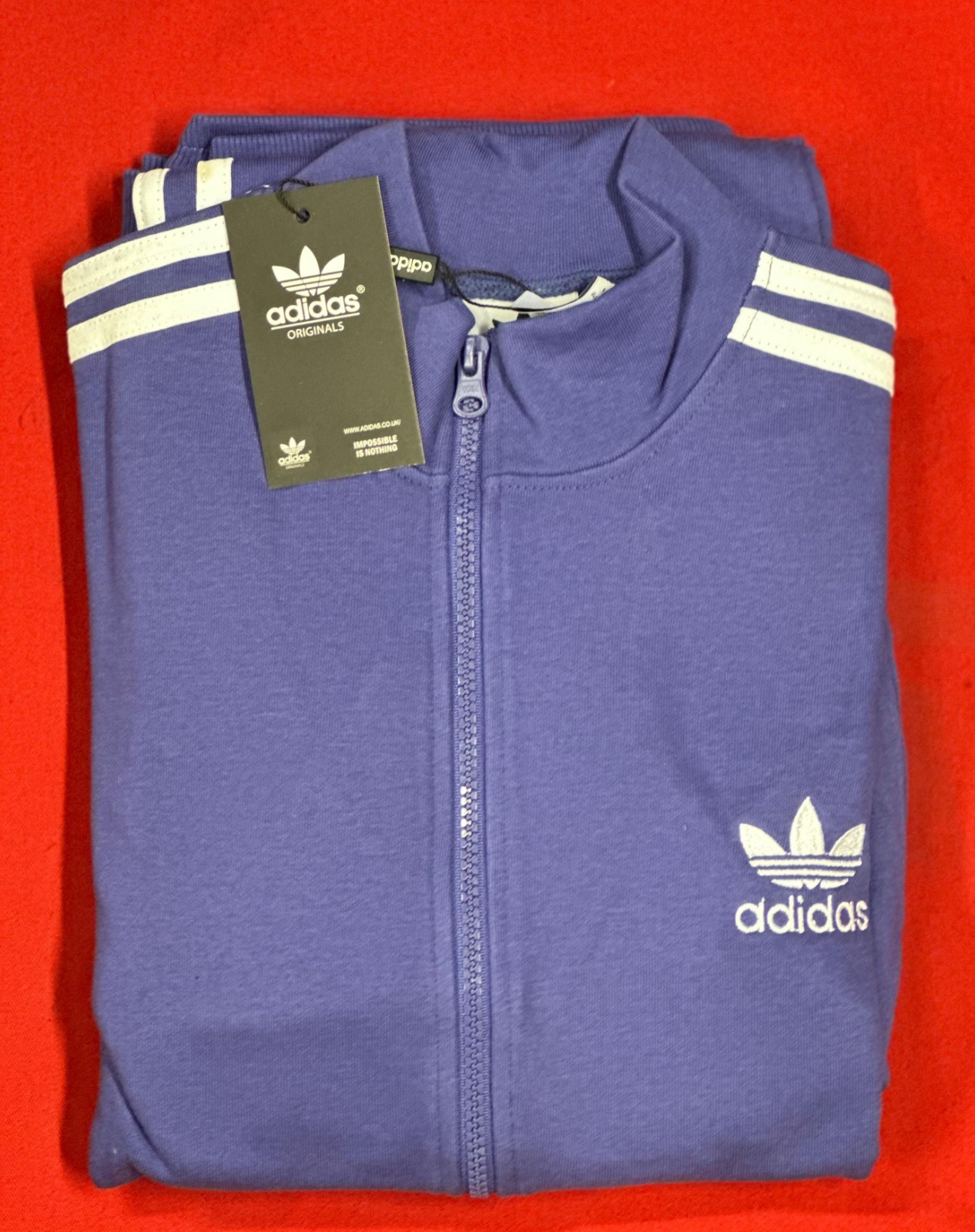 Logo: Embroidered Trefoil on top & bottom. 👕Top Size Guide (Sweatshirt) Top: Full zip closure, high collar, side pockets. These are minor and do not affect wear or durability. Travel & Loungewear.