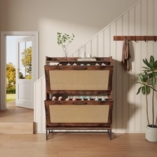 VonHaus Lena Rattan Shoe Storage Cabinet. VonHaus Rattan Shoe Cabinet for 18 Pairs of Shoes. Bohemian textures, Scandi tones, and industrial accents: introduce style into your hallway with the VonHaus shoe storage unit.