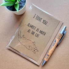 Image: Two cats entwined together and a red love heart. Simple, cute and romantic design. Handmade blank card printed on high quality card, complete with envelope. Content: 1 x card, 1 x envelope. Card: White smooth premium finish, 300 gsm.
