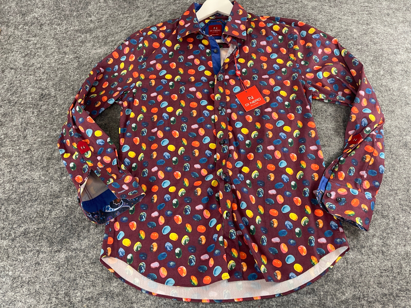 Di Nero Milano Shirt Men’s Medium Button Up All Over Fruit Print Burgundy N259