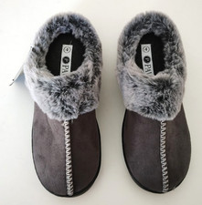 LADIES SLIP ON FUR TRIM LUXURY SLIPPERS FAUX SUEDE WOMENS WARM WINTER SHOES