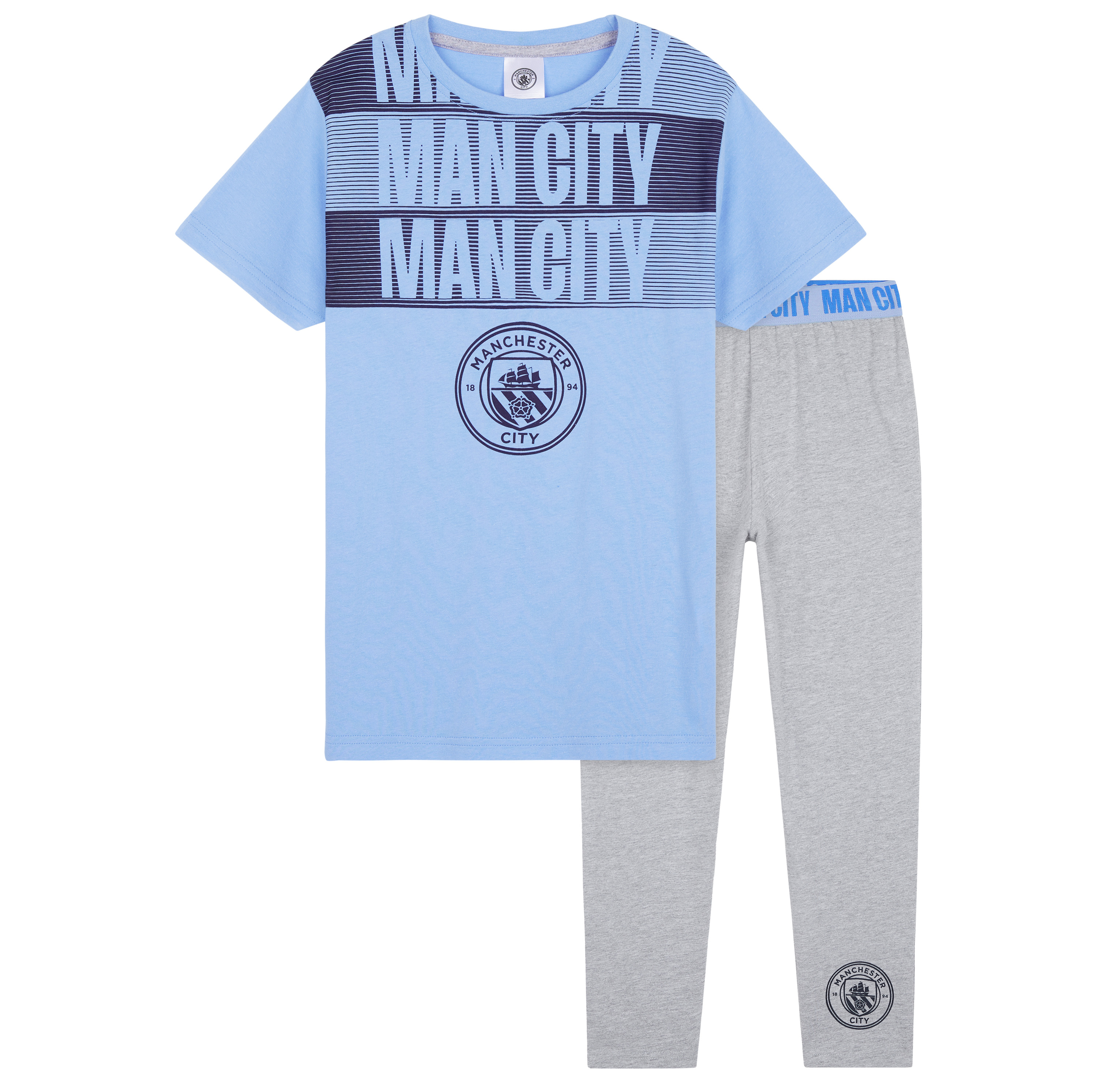 Manchester City Fc Kids Boys Pyjama Set - Bottoms And T-Shirt Short Sleeves