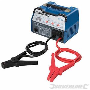 Heavy duty, intelligent 3-stage starter charger for 6V and 12V vehicle batteries. Leisure, deep-cycle, regular lead acid, AGM and gel cell batteries can be charged in or out of vehicles by trickle charge or a fast charge. Built-in heavy-duty clamps for quick and secure connection to battery terminals. Features start mode that provides a boost to weak batteries, which assists in starting vehicles. Intelligent microprocessor detects battery charge percentage and alternator effectiveness automatically by cycling through the large digital display. Includes built-in heavy duty clamps, robust all-metal construction housing, convenient carry handle and instructions.