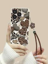 Leopard Print Heart Phone Case for iPhone 16 15 14 13 12 11 Pro Max X 7 XR Cover