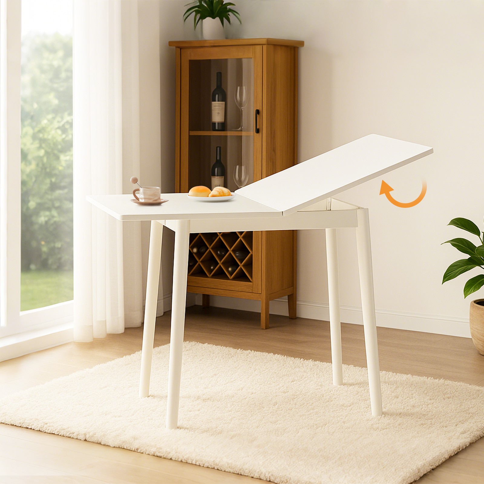 Dining Table Functional Foldable White Kitchen OfficeTable with Wooden Legs