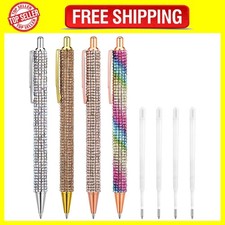 Category: Rhinestone PenAppearance color: gold, rose gold, gradient color, colorful AB colorPen color: blackMaterial: plastic, glassFunction: 1.0mm, rhinestone design, durableProduct size: 5.71 0.59 0.47 inches/14.5 1.5 1.2 cmPacking list: 4 pcs Sparkly Ballpoint Pens4 pcs Refill.