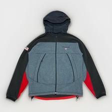 The Vintage Polo Sport Ralph Lauren Jacket is a men's XL red hi-tech jacket from the 90s. Made with a cotton outer shell and lined with cozy fleece, this puffer jacket features a full zip closure and is branded with the iconic Ralph Lauren logo. Perfect for those looking to add a touch of retro style to their wardrobe, this jacket combines classic design with a pop of color and a hint of nostalgia.